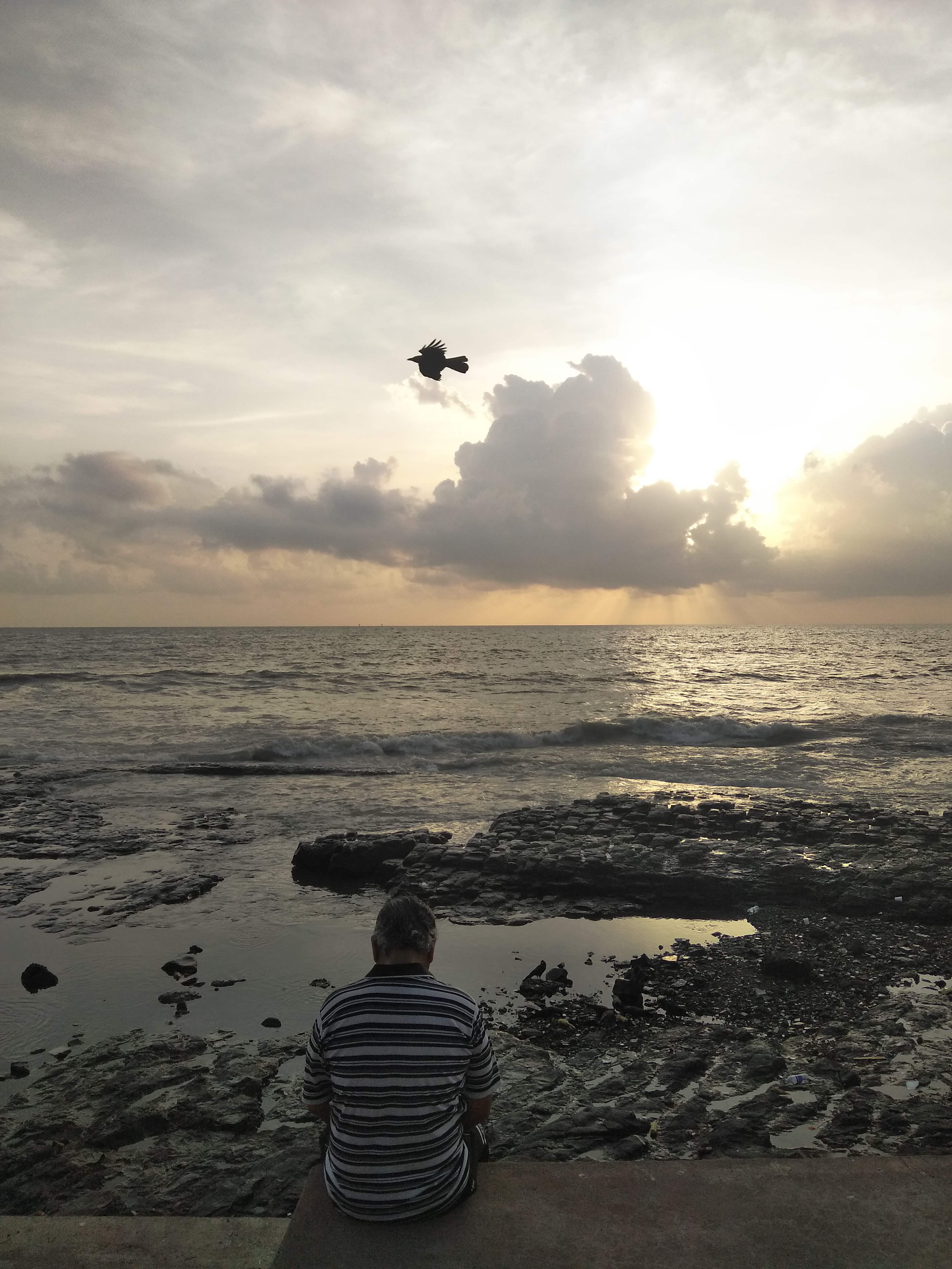 Being alone is something I cherish. Sitting by the sea on my own, I observe the people around me. It’s a typical Sunday evening; families, friends, couples enjoying their free evening together. Mumbai is one place where economic disparity is so largely visible everywhere. Behind me stands the house of one of the biggest movie stars (my favourite movie star too) and in front of me, I see impoverished kids taking their evening bath near the sea. Their happy smiles and loud giggles draw my attention. My attention is next drawn to an aged man who takes a break from his evening stroll to sit by the sea and check his Whatsapp. Next I observed​ this trio, a couple and their friend. The poor friend was the couple’s designated photographer. Yes, I love people watching and I love making up background stories for them in my head (I am sane!!). I’m sure Mumbai is going to give me plentiful opportunities to take my people watching skills to the next level.