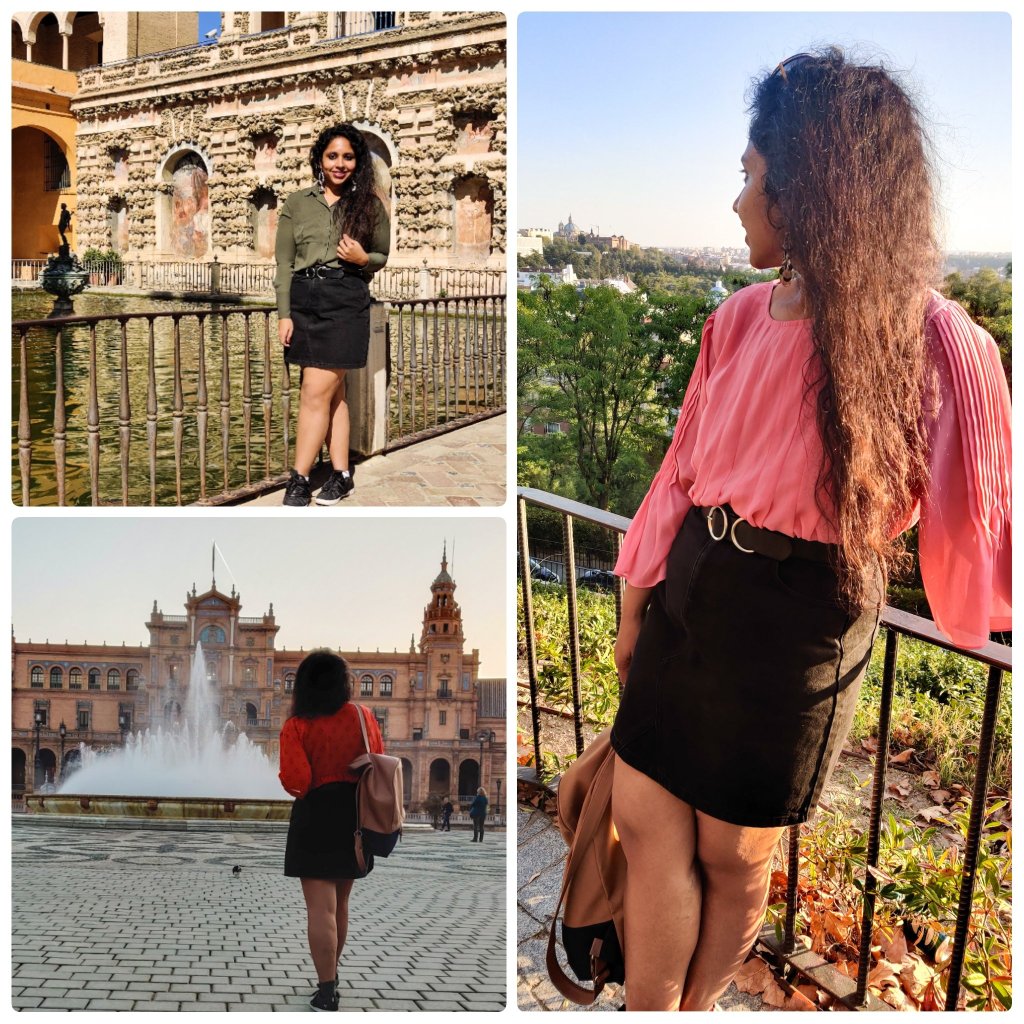 • Denim skirt (of your preferred length) – denim skirts are so versatile – they can be worn in summers, on the beach and in winters with leggings below. I bought one for my Spain trip. For 5-6 days out of the 13 day trip, I wore the skirt with different tops and accessories that made it a brand new outfit. It reduces the need to carry extra lowers and goes with everything.