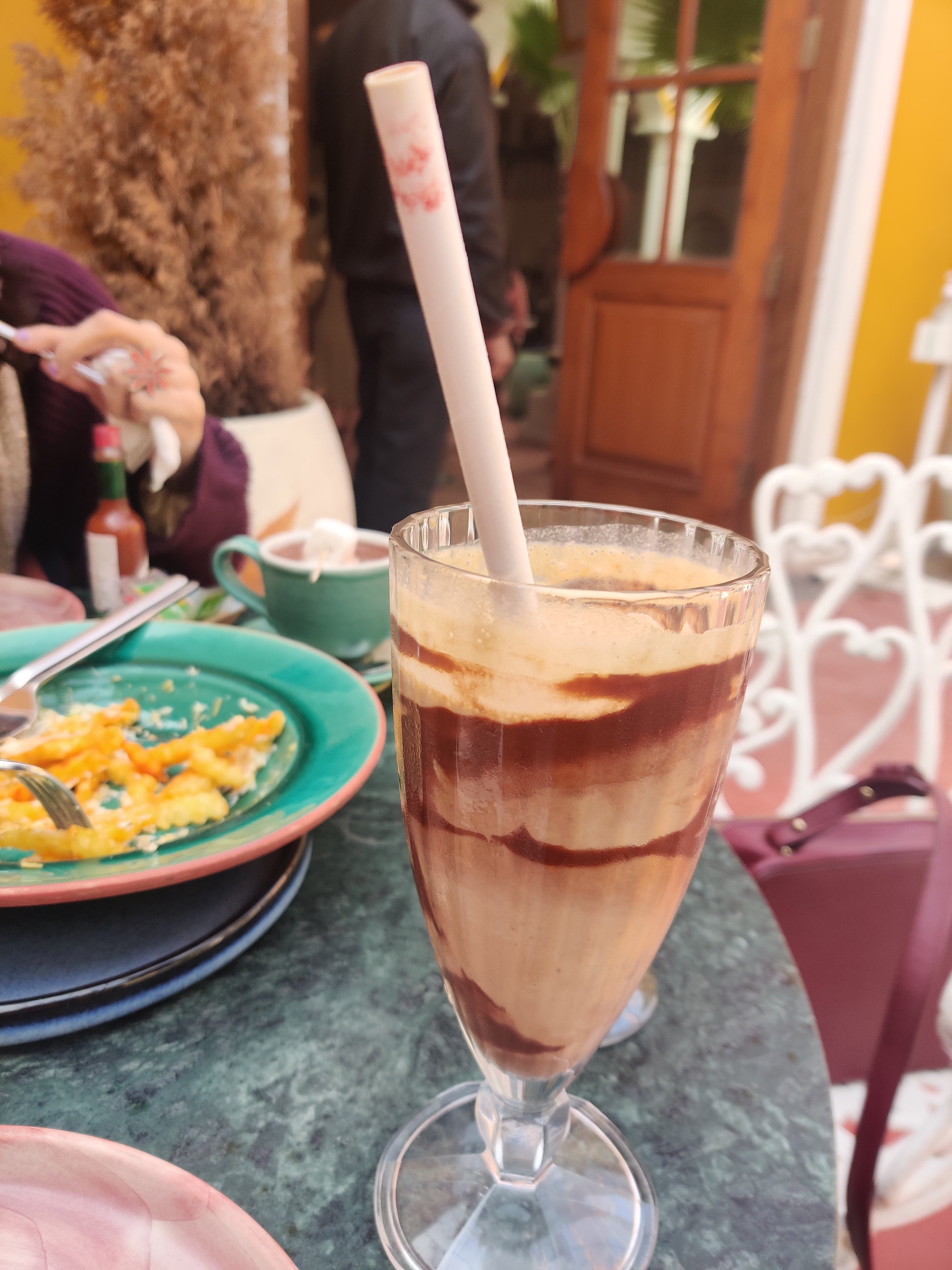 With the day off – our first to-do was to go for brunch. We picked this cutesy, new cafe called Colocal Chocolate Cafe for our brunch. The cafe has an in-house chocolate factory and you can do a tour to see how they make chocolate. The cafe has very cutesy vibes with yellow walls and a lot of greenery. It was EXTREMELY crowded since it is gaining popularity with the Delhi crowds. We managed to get a table outdoors and had an amazing meal!
