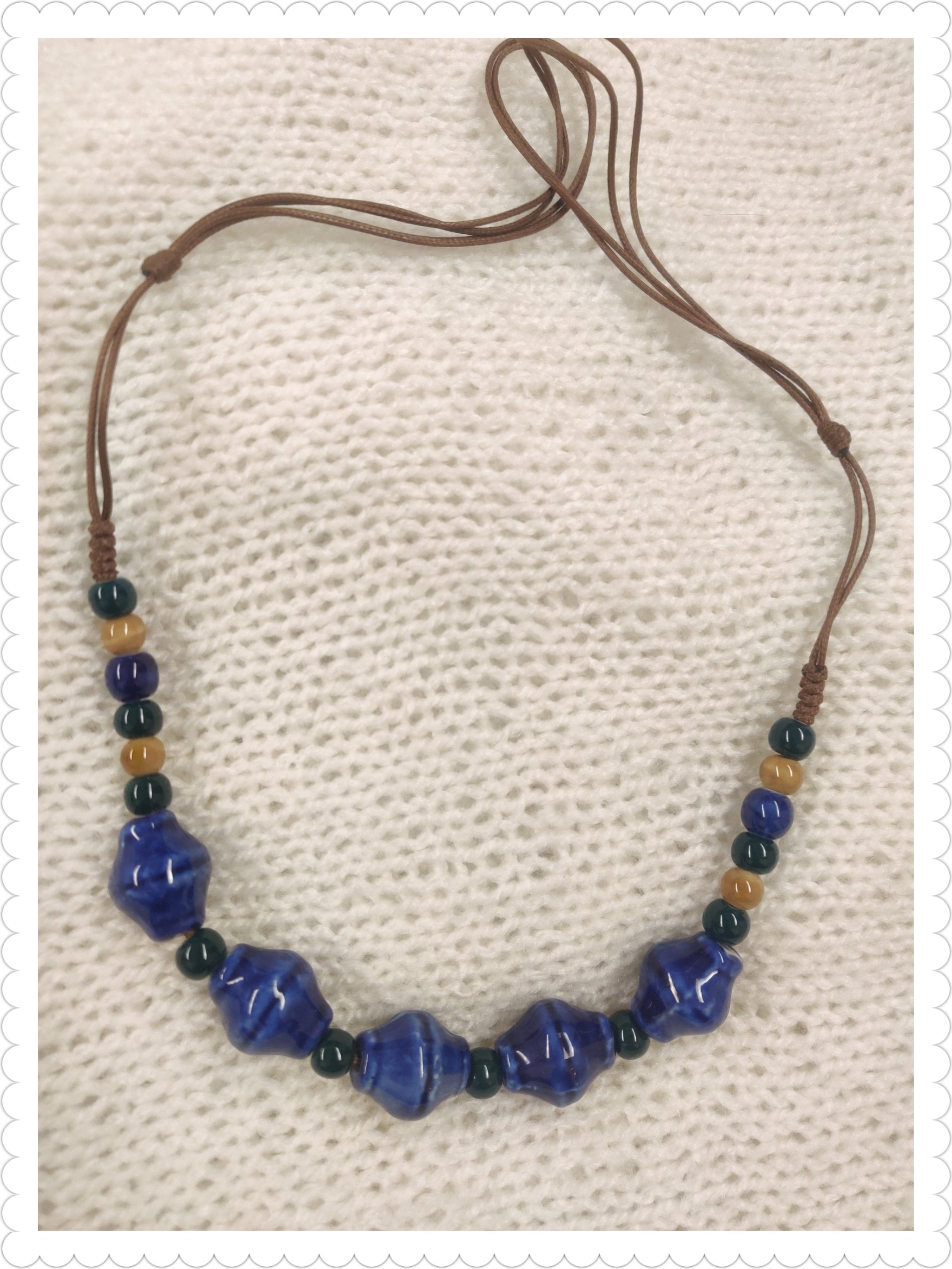 Since I have an allergy to most metals except for copper, I was enjoying the pieces which didn’t use metal to come into contact with skin! Lovely!