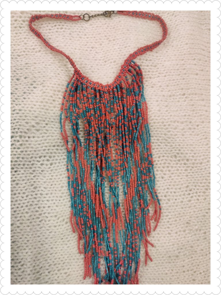 I’m partial to teal and orange colours. So I like the beaded long piece most.