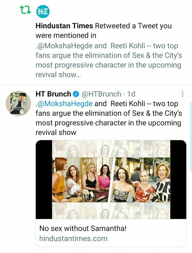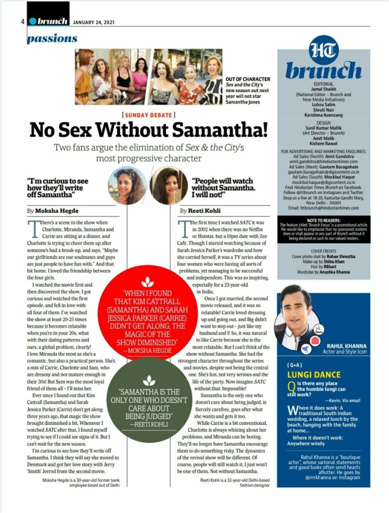 I was in the Sunday magazine published by a leading Indian newspaper (albeit it was just for my opinion on the 10 new episodes of the show Sex and The City). Before you start wondering how I made it here – my friend is on the editorial team of the magazine and knew that I was a big fan of the original show and asked me to be a part of the article.