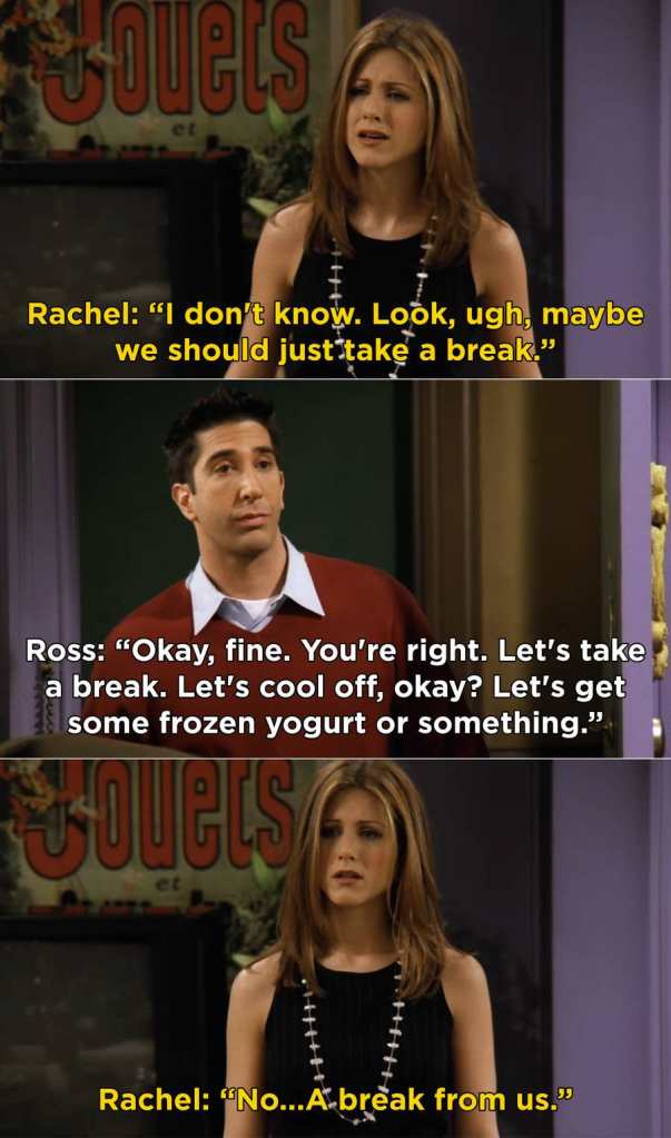 So here I am, taking a break…from US! Oh God, it hurts to even type it.
