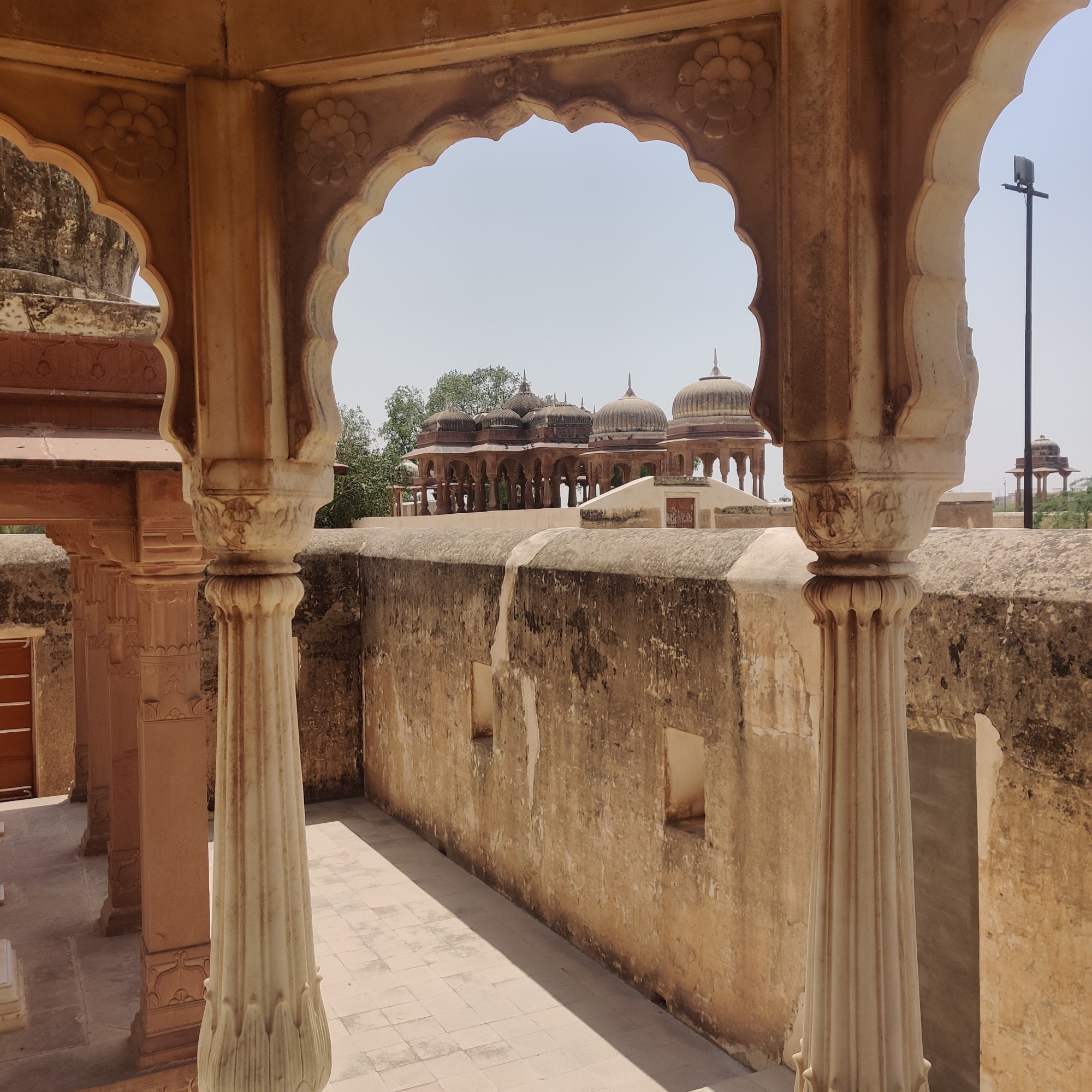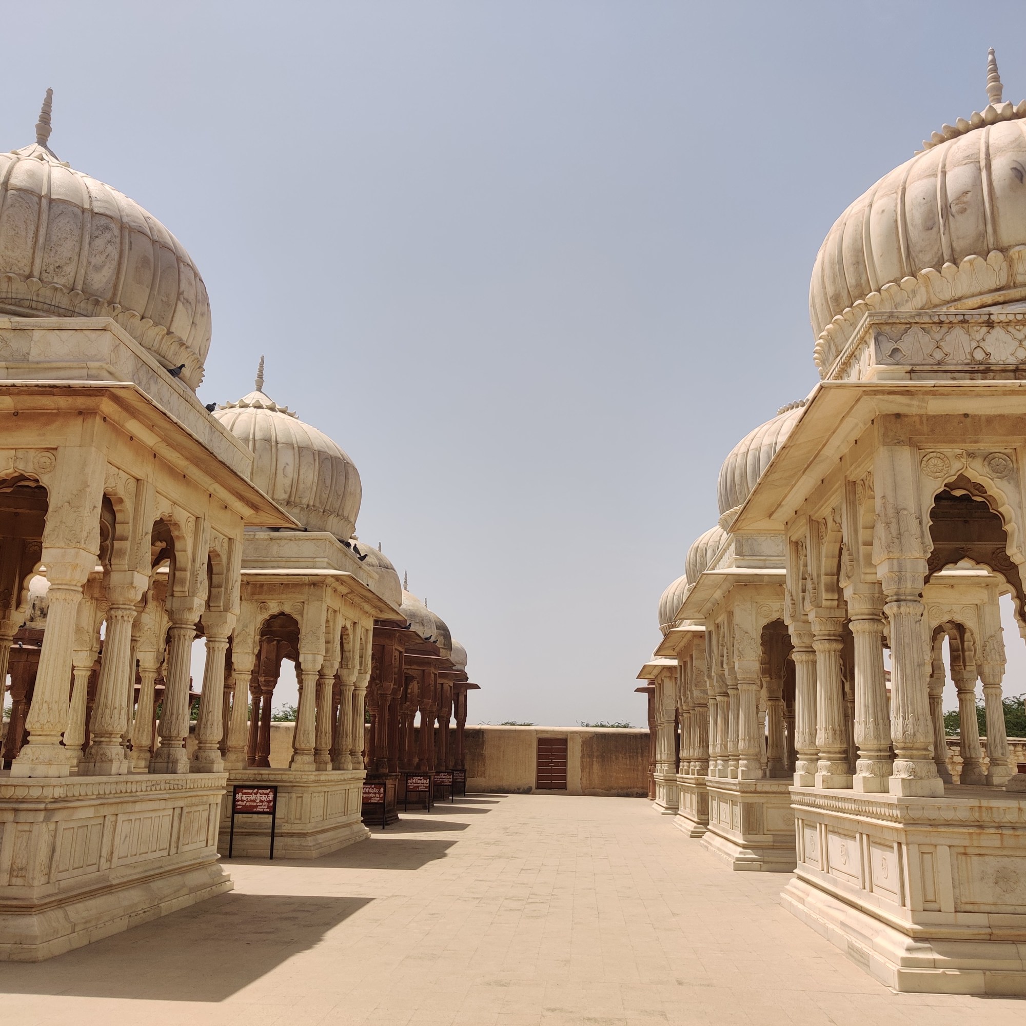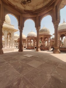 These are memorials built for the various royal family members that have passed over the past 300 years. Some have been built in red sandstone and some in marble.