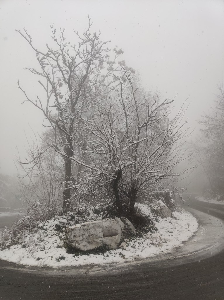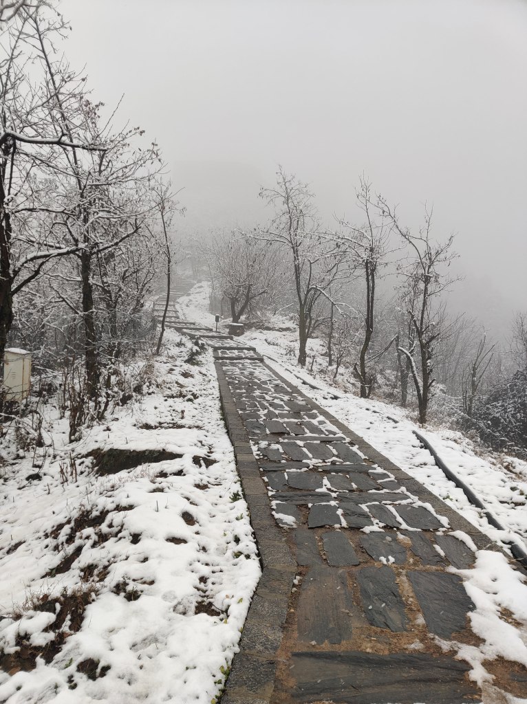 Snowfall en route the temple