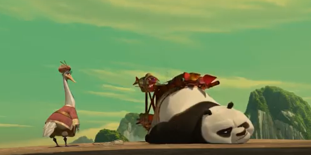 The beginning when Po is lost about what he wants to do in life. He struggles to find his passions but also struggles with adjusting to normal life as a noodle soup chef. Wanting to make his dad proud but also wanting to strike out on his own – I relate with this so much.