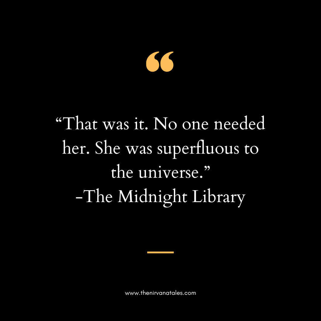 Plot: Nora feels lost and filled with regret at how her life turned out. After her cat dies, she decides that she is no longer needed by anyone and decides to kill herself. But instead of dying she finds herself in a library where the shelves are filled with infinite books based on the infinite lives she may have had if she had made different decisions. These lives all link back to her regrets across her life. She must travel through each life to find a life that she deems fulfilling and worth living.