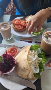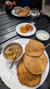 Day 1: As soon as we were done checking into our hotel, we headed for lunch to Aum cafe since we were famished. En route we stumbled upon Rani Laxmibai’s birth place which was a surprise for us. Aum Cafe is a really popular cafe (especially with foreign tourists). The food was great and I was happy to find vegan milk options here.