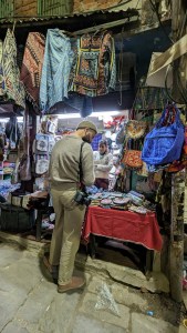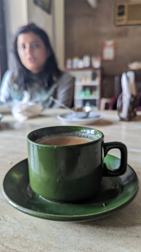 We then walked out of the ghat and into the market area just figuring out where we wanted to go for dinner. While walking around the market we spotted this beautiful heritage-y saree shop and we were intrigued. Jaharlal and Pannalal Saree shop had such beautiful sarees that I ended up picking up one for my mother. We walked around the market and then decided to go to this cutesy cafe for dinner – Sparrow Cafe. Then we walked back to our hotel and called it a night.