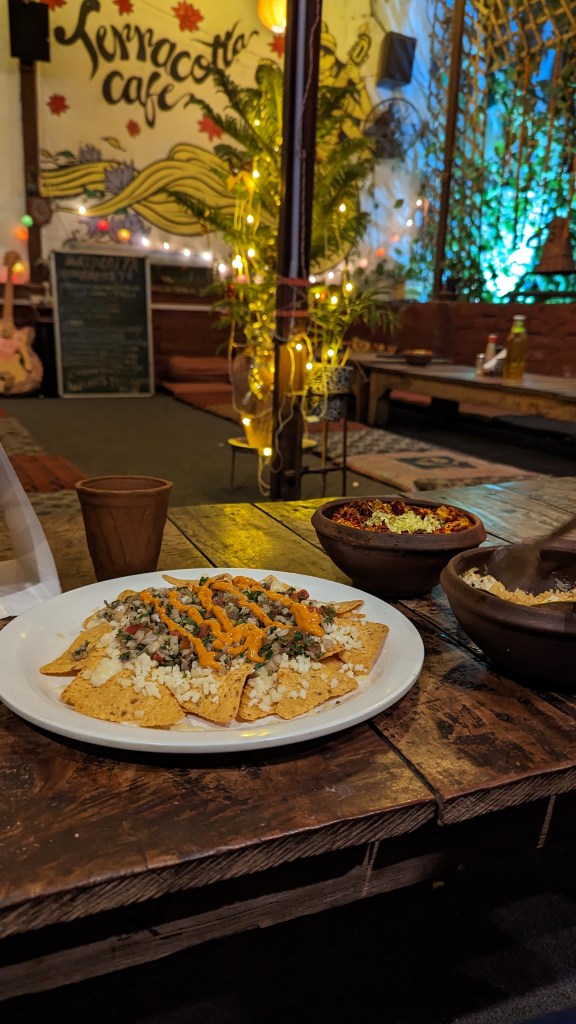 We then headed to our new room in the hostel we checked into. After resting for a bit (since we had walked a lot), we again ventured out for food. If you haven’t noticed already, we planned our meals better than the rest of the itinerary. We went to this really cute cafe called Terracota Cafe and had a light dinner and just enjoyed the vibe of the place before calling it a night.