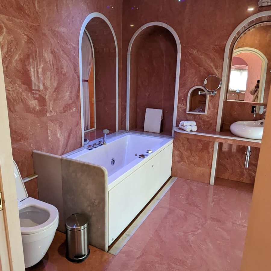 1. Rose Heritage Home – Near Shivala Ghat. The rooms were beautiful. The home only has 5 rooms and was extremely peaceful. Loved the bathroom with the hot tub. Being a heritage property it did have some quirks like the window (in the photo) overlooked a neighbouring property which looked like it is abandoned. They don’t have a fully functioning kitchen or dining area. They served us a homely breakfast in the courtyard which was also a nice experience. I’d definitely recommend staying here if you want to be in the center of all the touristy activities in Banaras.